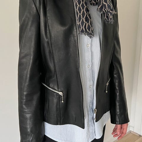 Svart italiensk skinnjakke str. 44 selges rimelig.