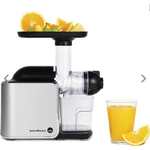 Ny, uåpnet Wilfa Juicemaster Slowjuicer, Svart & Sølv. Designet for å presse juice sakte med en kraftig motor som bevarer næringsstoffer. Leveres med flere tilbehør for juiceproduksjon, inkludert beholder for juice og fruktrester. Passer for hjemmebruk til å lage fersk juice av frukt og grønnsaker.