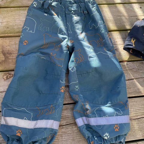 KappAhl Kax Proxtec barnebukse i størrelse 92, svart farge, egnet for både gutter og jenter. Laget av 100% nylon ytterstoff med fôr av 100% polyester og 2% polyester. Buksa har justerbare seler, glidelåslommer, og reflekser for økt synlighet. Designet for å gi beskyttelse mot vær og vind, med mulighet for lav temperatur tørking og anbefaling om å unngå bruk av tøymykner. Passer til bruk i utendørsaktiviteter for barn.