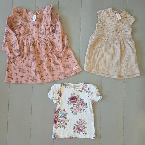 Nydelige kjoler selges samlet eller hver for seg, nyvasket med parfymefritt vaskemiddel.