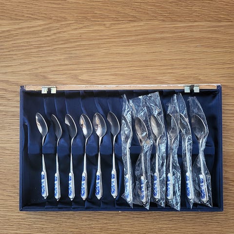 Kvalitets kakegafler i rustfritt stål. Brukt kun et par ganger . 6 stykker i hver eske. Pr eske kr 250. Kan sendes med Post Nord 69kr