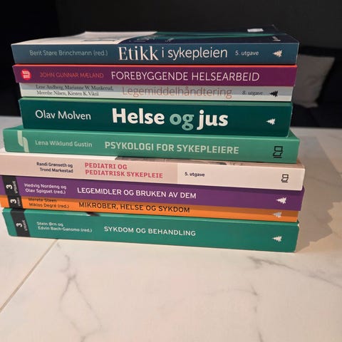 Selger pensumbøker til alle 3 årenen på sykepleien. Alle bøkene er i svært god stand, kun to av dem har noen få highlighter markeringer i seg📚 Kan sendes eller hentes i Tønsberg området!