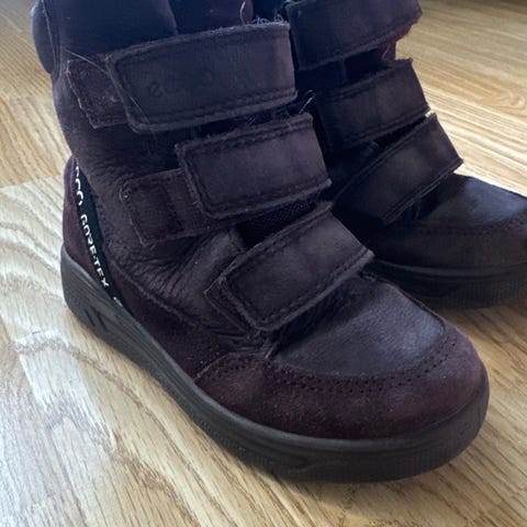 ECCO barnesko for jente i størrelse 27, vinrød farge. Skoene har borrelås for enkel justering og er laget med slitesterkt materiale. Sålen har godt grep, egnet for aktiv bruk.