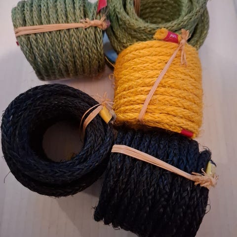 Materialet er nylon, og tråden er egnet for bruk i pakking, håndverk og andre formål som krever en sterk og fleksibel snor.