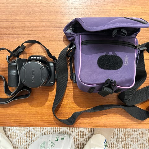 Fujifilm er et Y2k digital kamera med 6.3 mega pixler, som tar både klare bilder å bilder med 2000s vibe, veldig populært men ikke så lett å få tak i.