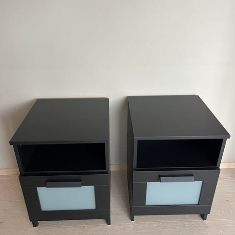 Design nattbord med skuff og rustfri stål fot kun 750,-