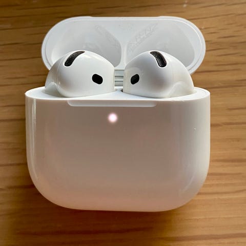 Apple øretelefoner med kabel, hvit farge, inkludert innebygd fjernkontroll og mikrofon.