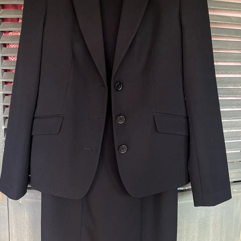 Drakt i en nydelig sjokoladebrun farge bestående av dressjakke str 38 og langt skjørt i str 36 selges samlet kr 350,-