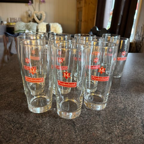 Alle flaskene har Frydenlund-etikett. Litt varierende tilstand på etikettene, se bilder. Støvete, men ellers i bra stand. Kan brukes til ølbrygging eller samleobjekt.