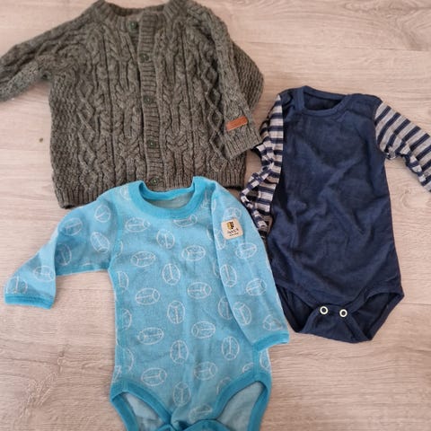 Dale of Norway Barnetøy Sett i brun farge, størrelse 62, beregnet for gutt. Sett bestående av genser med knapper, bukse med skulderstropper og lue med knytebånd, alt i strikket materiale.