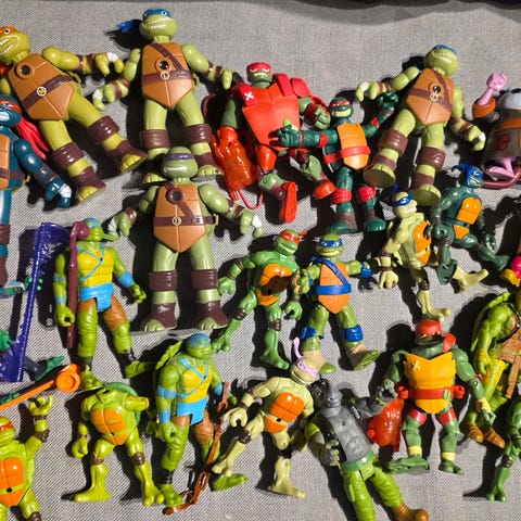 Selger denne blandingen av Leker/samleobjekter/brettspill da det ikke blir brukt å sønnen vår har alt for mye. Turtles Mayham sewer Lair kostet 1200kr for 2 år siden. Svært lite brukt, Men blitt liggende i søppel sekk så har fått litt slitasje som vises på bilde. Muligens noen deler mangler. Men fortsatt ett veldig bra sett. Kristin og Håkon OL dukker er aldri blitt åpnet og er i perfekt stand. De er cirka 25 cm høy. Brettspillene er aldri brukt. Resten ser dere på bilde å er litt forskjellig. Kjøper betaler evt frakt