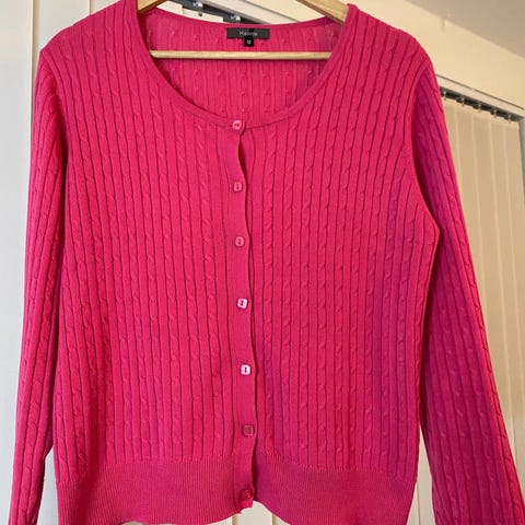 Mohito merke Cardigan i burgunder farge med fine metal gullknapper størrelse medium. Pent brukt.