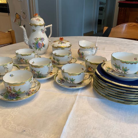 Kaffeservise ‘ Appony Pink’ fra Herend, Ungarn. Det har aldri vært brukt.