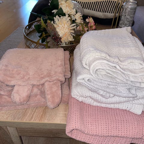 Zara Home strikket teppe i lys blå farge laget av bomull. Teppe har et mønster med flettestrikk og er egnet for bruk som dekorativt eller funksjonelt teppe i hjemmet. Kjempefint babyteppe for vogn.