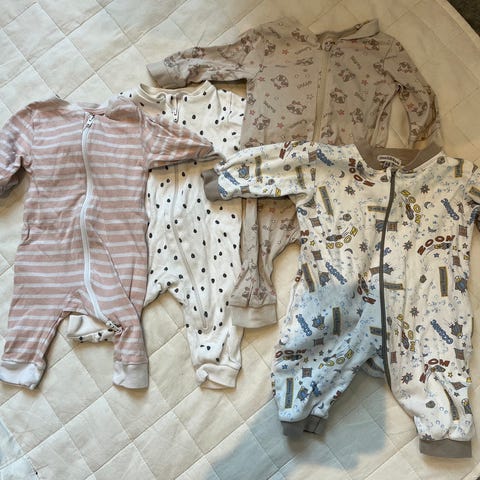 Selger tre pysj: to Lindex pyjamas i størrelse 74 med dobbel glydelås og en H&M pysj i str 74. En pysj har noen merker, se bildet.