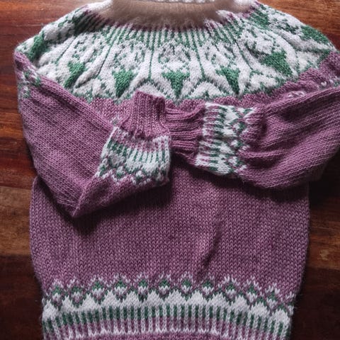 2 Hjemmestrikka gensre str 8/9år selges samlet.
