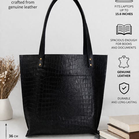 Elegant skulderveske i svart krokodillemønster // ✅