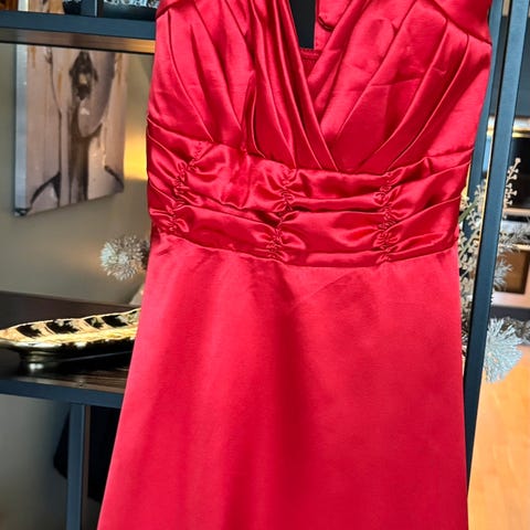 Pen, rød selskapskjole til jul eller spesielle andledlinger. Brukt en gang. Regulerbar størrelse, ca 38-40.