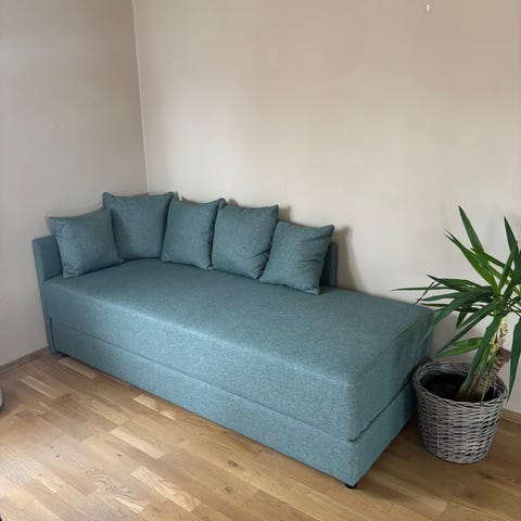 Selger sovesofa av god kvalitet. Den tar lite plass også er den superenkel å gjøre om til seng. Selges på grunn av plassmangel. Må hentes raskt etter salg.