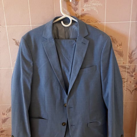 Pent brukt dress i fargen blå. Den er kjøp på Dressmann, og fungerer til all slags høytidelig festlighet!