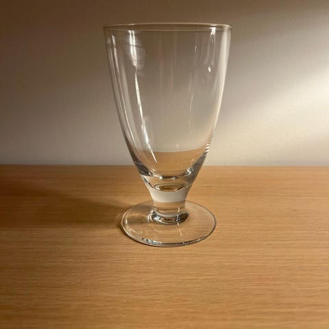 Hadeland Glassverk drikkeglass laget av klart glass, med frest pynt i siden