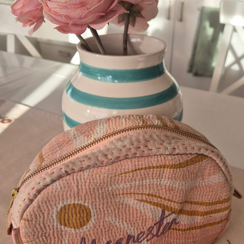 Maanestens Star Dust Veske er utsmykket med et håndmalt akvarelltrykk i fine, feminine nyanser. Nyprisen var 950kr
