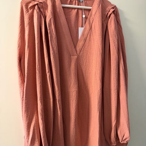 Dette er en kjempefin og romantisk kjole i et lett viscose-stoff. Kjolen er sydd med et krepp-opplegg på brystet så den sitter tett og godt på brystet når den er på. Denne kjolen har kun vært brukt en gang. Den ble kjøpt i en butikk i England.
