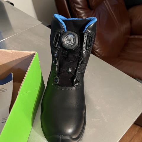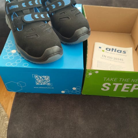 Atlas Vernesko støvler i svart og blå farge, størrelse 38. Laget med slitesterkt materiale og solid gummisåle for godt grep. Ankelhøy modell med snøring for justerbar passform.