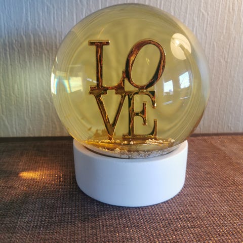 Snøkule med motiv av en ape og en palme. Kule i glass med base i grønn farge. Dekorativ gjenstand som kan brukes til pynt. Nypris 499,-