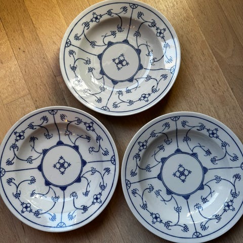 1 litt større og 2 litt mindre tallerkener fra DDR-produksjonen (torgauer porzellan). ingen hakk eller skår. diameter ca 22cm på de 2 mindre og diameter ca 24cm på den litt større.