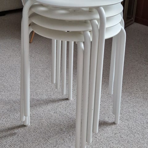 Denne trebeinte krakken med bøyde bein kan stables og har et trekantformet sete. Den er en kjekk liten sak når du trenger en ekstra sitteplass for gjester eller et sted å sette koppen.