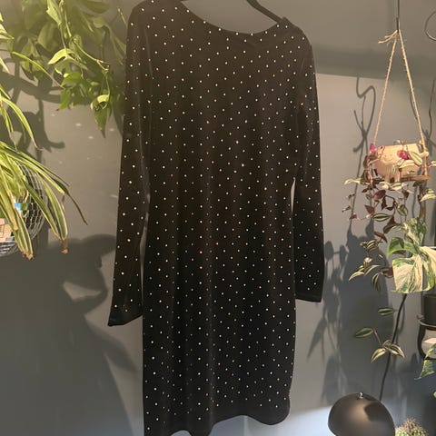 H&M festkjole i svart farge, størrelse 40 for damer. Kjolen har sequents