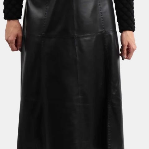 Co'couture Phoebe Skinnskjørt i størrelse L, laget av 100 % lammeskinn med fôr i 100 % polyester. Skjørtet er svart og har en lang lengde med splitt foran. Designet for kvinner.