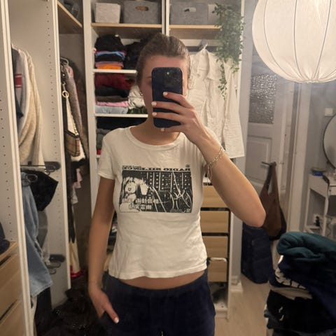 Søt T-skjorte med print fra brandy Melville i onesize. Kan møtes i Oslo eller Sandefjord. I 100% bomull.