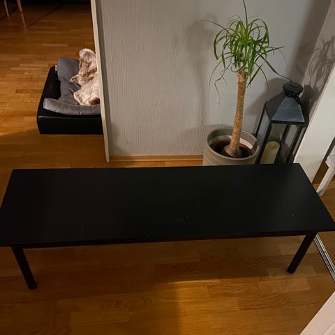 TV-bord på hjul. Noe falmet med merker i bordplaten. Ellers helt og fint.