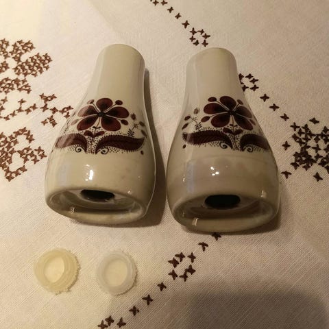 Norske Salt- og pepperbøsser i Sølv og Emalje