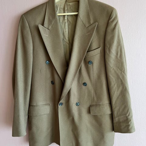 Jakken ble kjøpt vintage i København i 2021, men er lite brukt av meg. Størrelsen sier 48, og jeg tolker det som XL. Selv er jeg L til vanlig, 180 cm høy og 84 kg – og denne jakken er noe for stor.