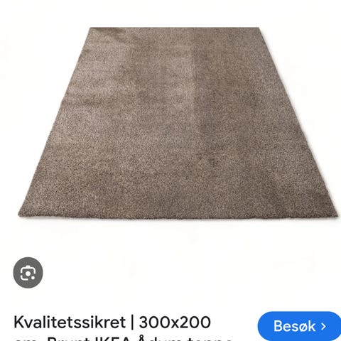 Teppe er pent brukt, uten flekker eller skader. Mykt og behagelig å gå på, og enkelt å holde rent.