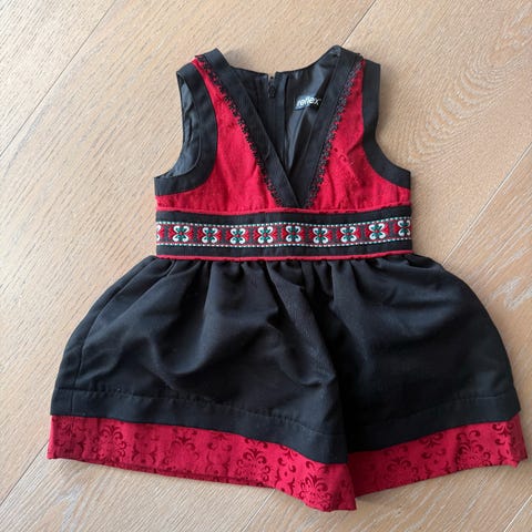Lindex kjole i størrelse 80,. Brukt som julekjole i fjor. Kjolen er rød med hvite hjerter og har lange ermer.