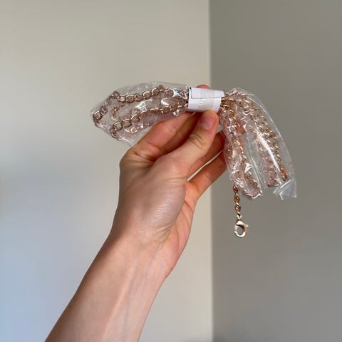 Søkeord: veskehank, metallkjede, sølvkjede, veskerem, veskelene, DIY, vesketilbehør, håndlaget, sølvfarget lenke, skulderreim