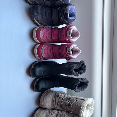 Asics barnesko i størrelse 33, farge rød med hvite detaljer. Skoene har borrelås og snøring for enkel tilpasning. Yttersåle med godt grep, egnet for daglig bruk.