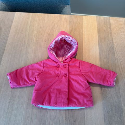 Kjempesøt jakke som vi fikk i gave og som vi ikke rakk å bruke noe særlig pga. feil sesong. Passer for baby ca. 1-3 måneder. Størrelsen er 60, tilsvarer nok 56/62, men nærmere 56.