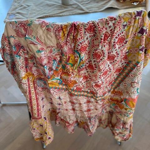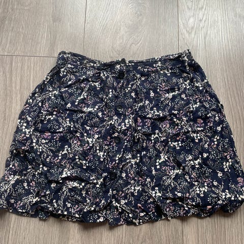 Selger dette søte skjørtet som er fint til sommeren. Er pent og lite brukt. Det er ikke noe lapp inni det, men vil si det passer en S best. Er ganske stretchy rundt magen da det er sånn «vaffel» scrunch, så passer nok en xs og en M også!