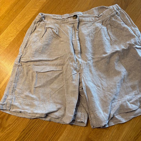 Lindex shorts i beige farge, størrelse 38 for kvinner. Laget av lett materiale, egnet for varme dager og uformelle anledninger. Har lommer og elastisk midje for komfort.