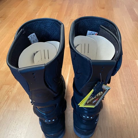 Sidi Adventure 2 Gore-Tex motorsykkelstøvler i svart farge, størrelse 50. Støvlene har Gore-Tex membran for vanntetthet og pusteevne, solid gummisåle med godt grep, og justerbare spenner for tilpasning. Egnet for motorsykkelbruk med beskyttende og slitesterke materialer.
