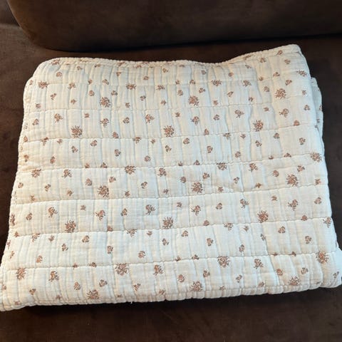 Mykt og deilig babyteppe i økologisk bomull. Hvit m/blomster