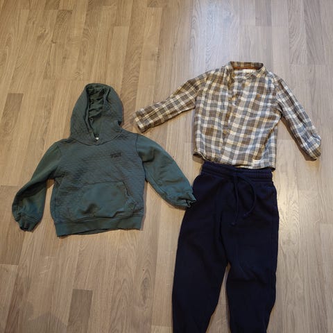 Skjorte fra Lindex str 6-7 år, er ikke brukt. Genser fra newbie str 6- 8 år, er brukt noen få ganger. Svart olabukse str 9 år, brukt 2- 3 ganger. Bergans fleecejakke med hette , str 7 år, pent brukt, 250 kr for hele pakken.