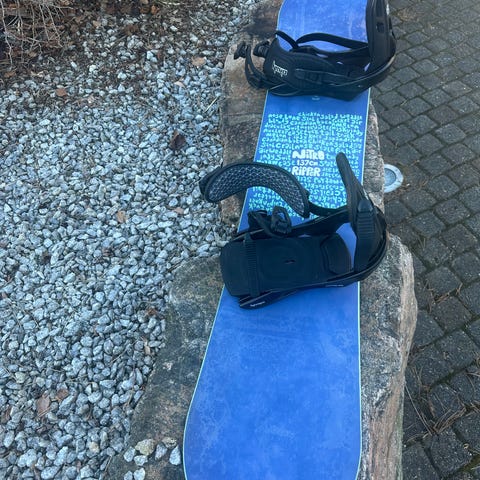 Allian white out snowboard, 151 cm. Brettet er pent brukt, og i god stand. Littt rust på kantene, men det kan enkelt pusses vekk (det meste forsvinner nok etter noen turer i bakken).