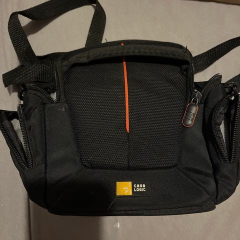 Case Logic kameraveske i svart farge, laget av slitesterkt materiale. Vesken har flere lommer og glidelåser for oppbevaring av kamera og tilbehør. Passer for kompaktkameraer og små digitalkameraer.