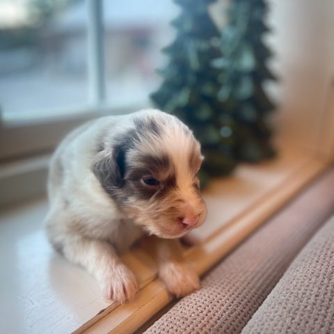 Lille Mauritz på 11 uker søker etter den rette familien 🥰 Han er en meget vennlig, mild og sosial Australian Shepherd hannvalp som ser frem til nye og spennende kapitler i livet.